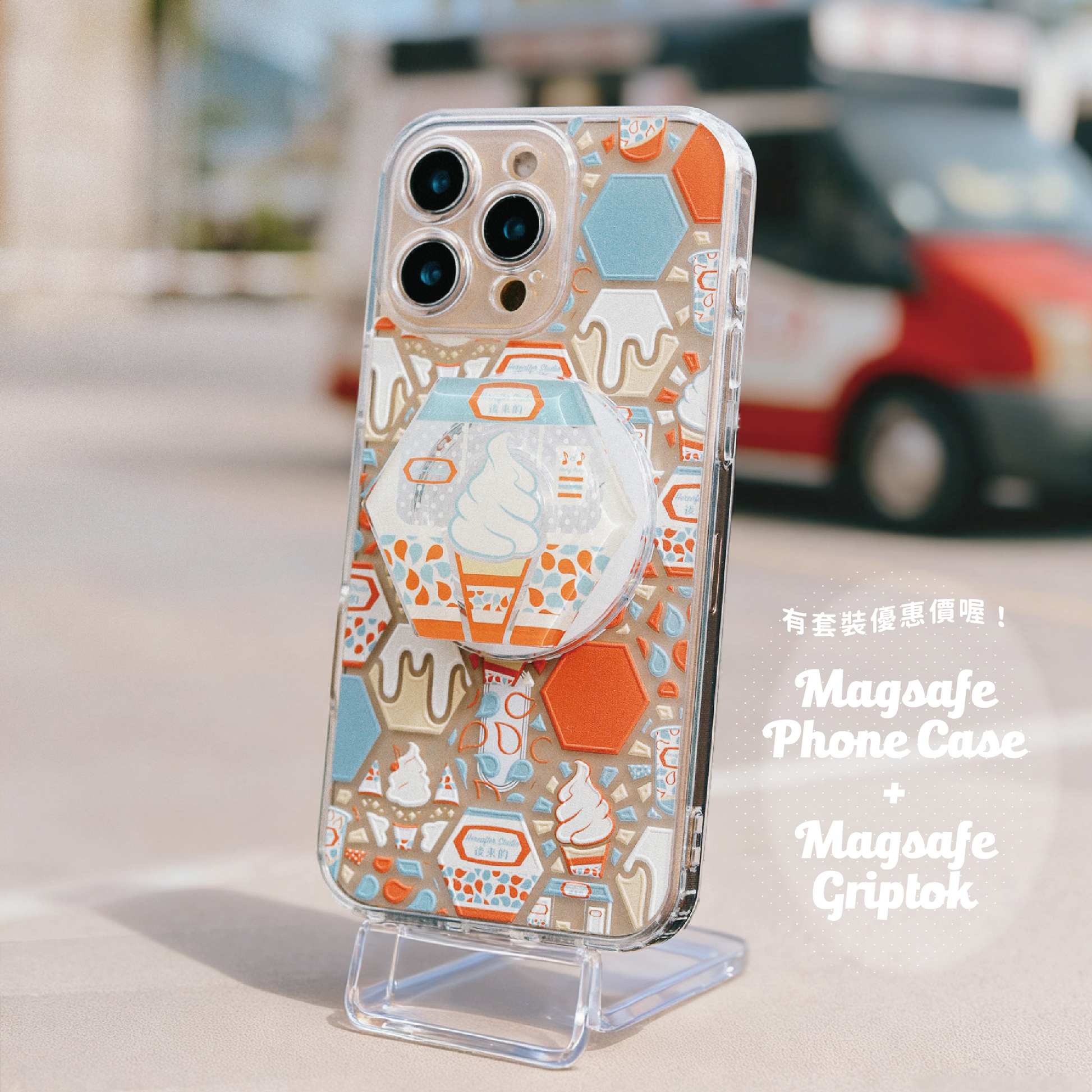 【磁吸手機座】🍬 雪糕車 🍨|Creamy|六角磁磚系列